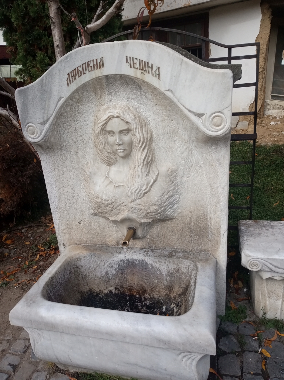 Девойката обаче, тъгувала по бащината къща, примолила се на любимия да се върнат, но старият баща вече се бил поминал. Заплакала девойката, а там, където падали сълзите ѝ бликнала вода. Тогава момъкът решил да извае от мрамор образа на любимата. Сътворил на това място чешма от бял мрамор и пейка, за да присядат пътниците. Легендата разказва, че който отпие глътка от тази вода, той отпива частица от тази любов, която остава завинаги в него.